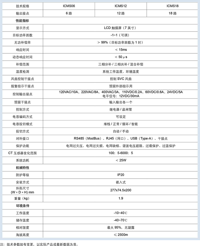 ICMS具有过欠压、过欠频、缺相、过载、过温、谐波电压超标等保护功能。