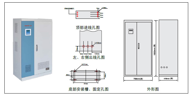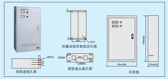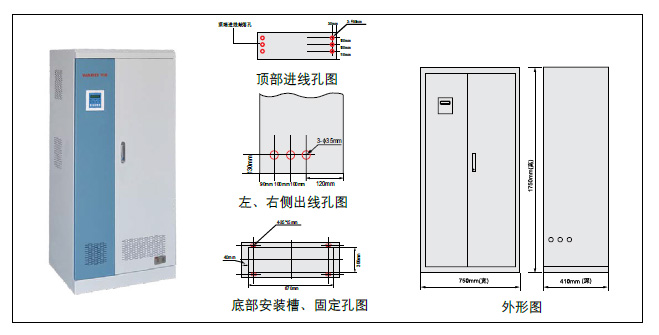说明: 安装形式、进出线(上、下)、单路/双路供电、输入输出相数、备用时间、消防联