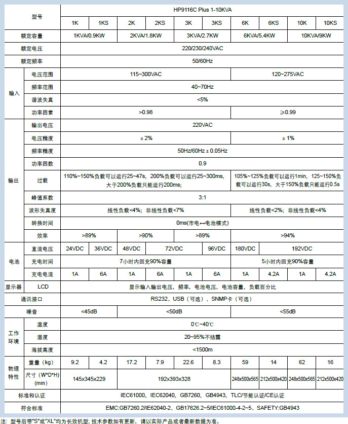 HP9116C/HP9316C Plus 系列在线式UPS