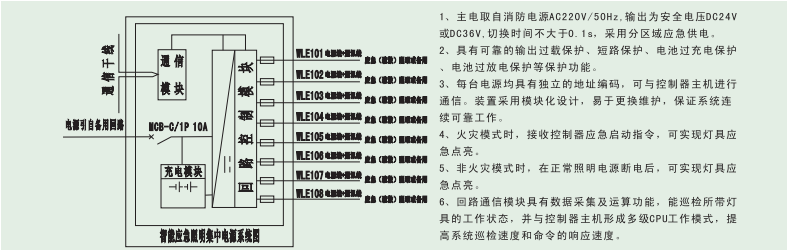可靠的通讯功能:配有RS232、RS485接口,能与系统主机、终端灯具进行通讯,既可实现控制器对集中电源年检、月检及应急工作状态的监控,也可将每个具有独立地址码的终端灯具的工作状态上传至系统主机并将系统主机的指令传递给终端灯具,还可以与FAS系统连接进行消防联动,也可以实现远程监控。