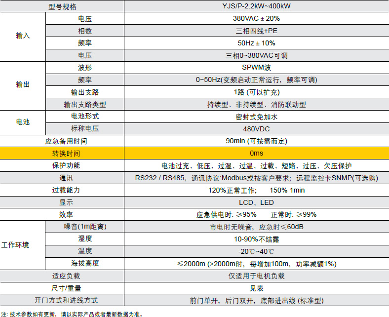 YJS/P系列EPS应急电源为消防设备或一级负荷中的动力