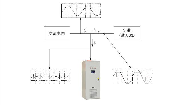 有源电力滤波器(APF:Active Power Filter)以并联的方式接入电网,通过实时监测负载的谐波和无功分量,采用PWM变换技术,将与谐波和无功分量大小相等,方向相反的电流注入供配电系统中,实现抑制谐波,动态补偿无功的功能