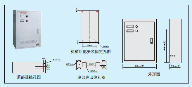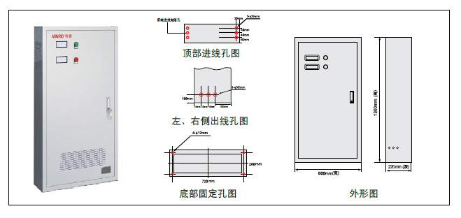 说明: 安装形式、进出线(上、下)、单路/双路供电、输入输出相数、备用时间、消防联