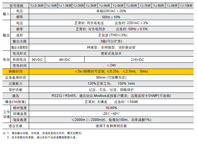 YJ 系列EPS产品技术参数