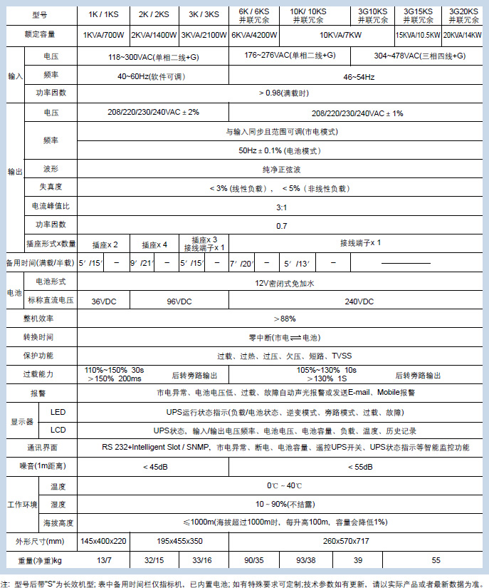 韦德Gold系列在线式UPS,包括容量1KVA-20KVA的一系列产品,与后备式UPS相比,在线式UPS能够为负载提供更佳的电源环境,无论从稳压输出范围起,频率范围,输入杂讯的虑除,及至市电模式与电池模式零切换时间等方面考虑,在线式均是*佳的UPS结构。因些,对重要的设备,或是对电力环境要求苛刻的设备几乎都应选在线式UPS。
